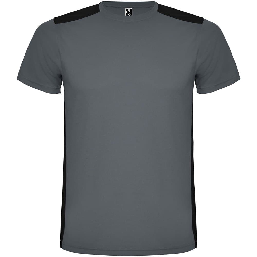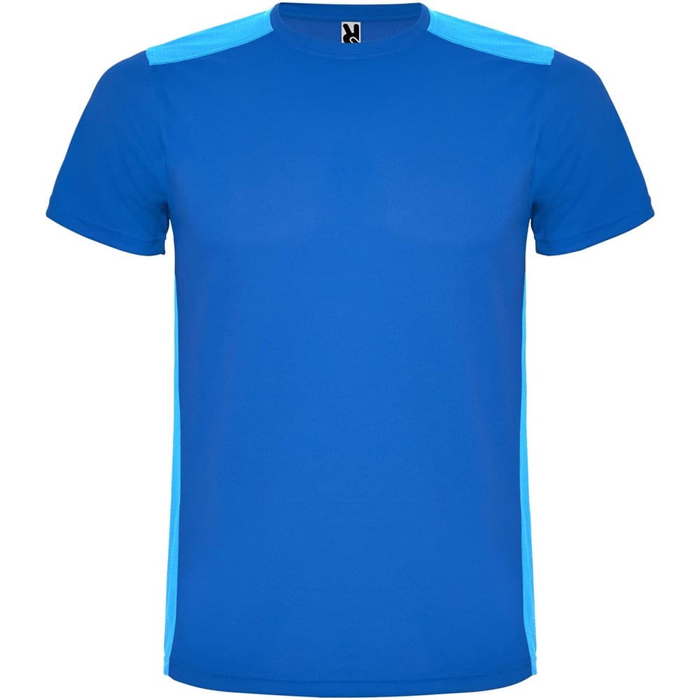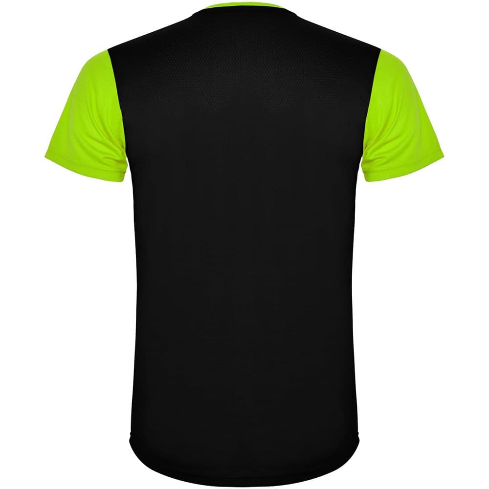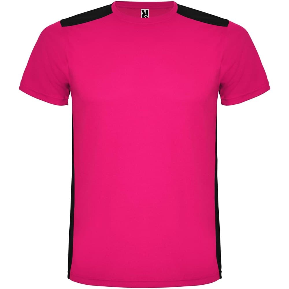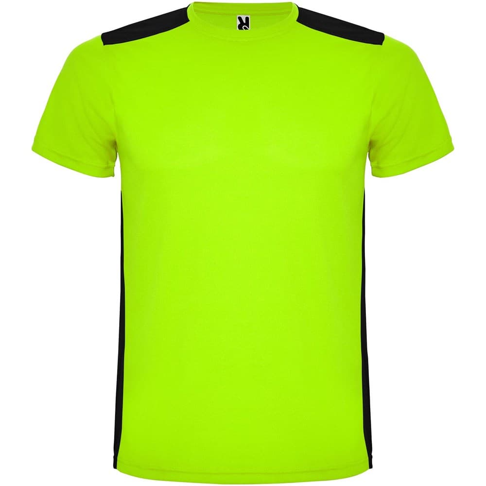 Gemakkelijk drogende, technische en ademende stof. Ronde hals. Combinatie van twee polyesterstoffen op de rug en schouders. Birdseye-stof aan de voorkant en ademende 3D-meshstof aan de achterkant. Stof voorbereid voor vochtopname. Decoratieve zigzagsteek aan de zijkanten en schouders. Rugpatroon is iets langer. Verwijderbaar label.