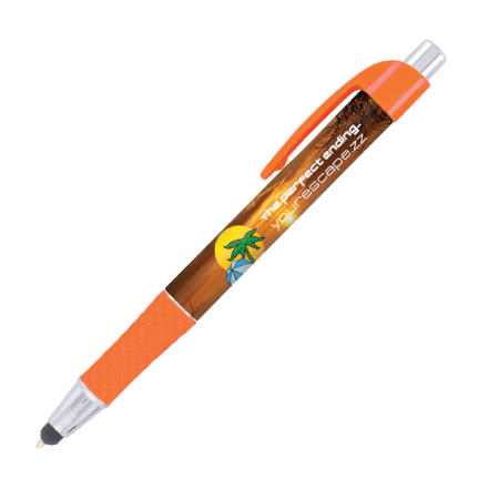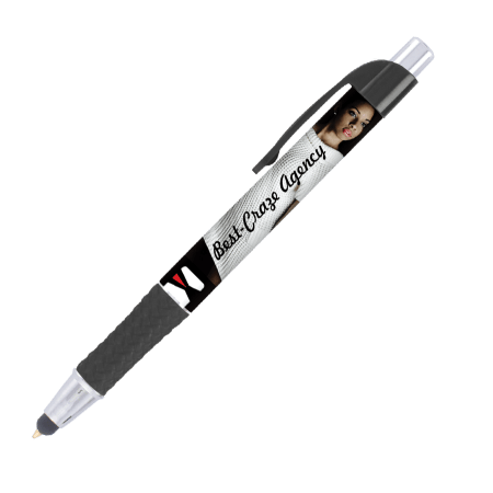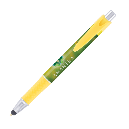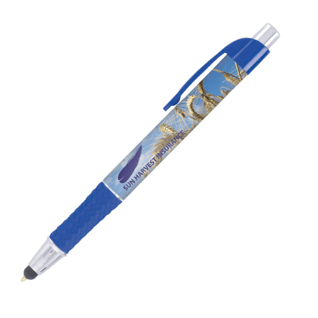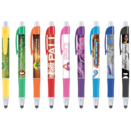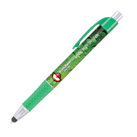 DIA balpen Grande Stylus, slanke, full colour bedrukte balpen met gekleurde grip en gebogen clip