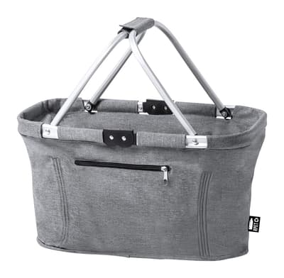 Opvouwbare picknickmand van 600D RPET polyester, met aluminium frame en voorvak met ritssluiting. Met kenmerkend RPET-label.