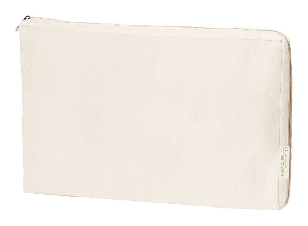 Gewatteerde laptoptas van gerecycled katoen met ritsvak en kenmerkend label van gerecycled katoen. Geschikt voor laptops tot 15". 100% gerecycled katoen, 275 g/m².