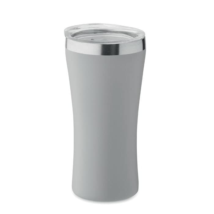 Kleine dubbelwandige vacuüm geïsoleerde drinkbeker van gerecycled roestvrij staal (90% gerecycled roestvrij staal en 10% roestvrij staal) met deksel met drinkopening van transparant PP. Inhoud: 160ml.