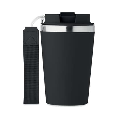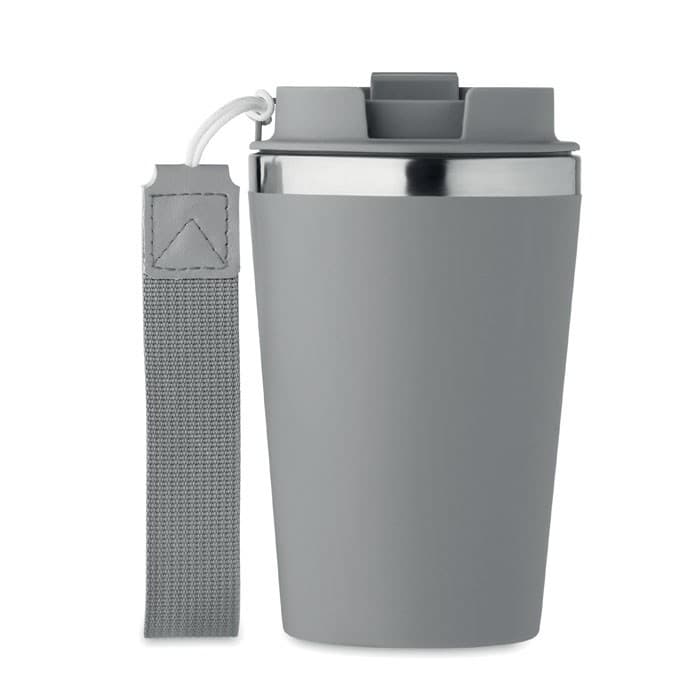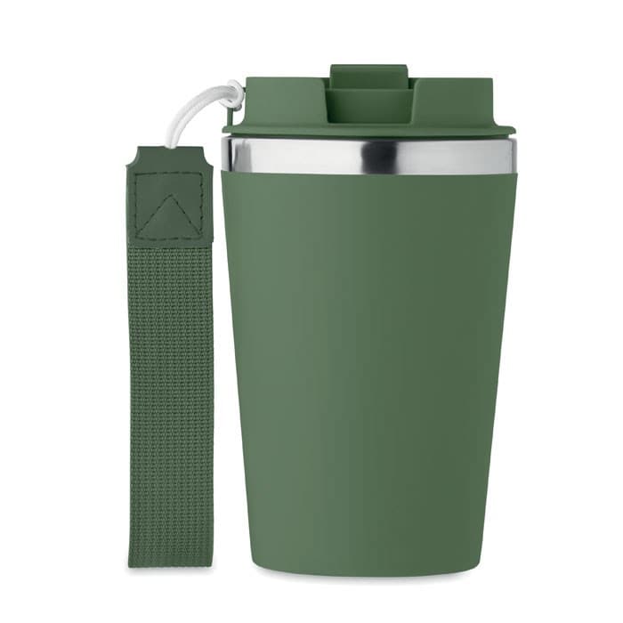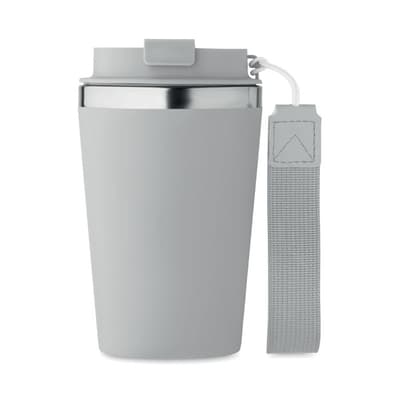 Dubbelwandige thermosbeker van gerecycled roestvrij staal (90% gerecycled roestvrij staal en 10% roestvrij staal) met gerecyclede PP buitenlaag met RPET polsband. Inhoud: 350ml. Lekvrije stalen mok en ideaal voor stalen mokken bedrukken.