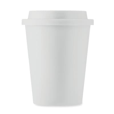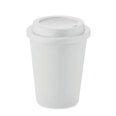 Dubbelwandige tumbler in PP. Inhoud: 300 ml. Perfect voor koffiekopjes bedrukken.