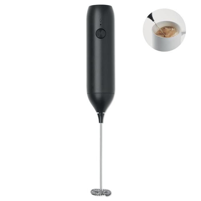 Handbediende elektrische melkopschuimer in ABS met matte afwerking. Ingebouwde batterij met een vermogen van 500 mAh. Oplaadbaar via USB Type-C (kabel inbegrepen). Snelheid: 10.000 rpm.