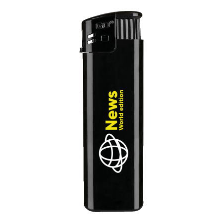 Elektronische goedkope aansteker hard colour, navulbaar, 23x81x8 mm, met gas stop, shock proof bodem, kinderbeveiliging en ISO gecertificeerd