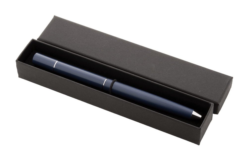 Metalen 2-in-1 balpen en inktloze pen in zwarte geschenkverpakking. Blauwschrijvend. Met punt van metaallegering, die het papier oxideert.
