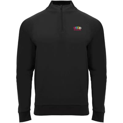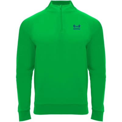Technische stof. Raglanmouwen. Fleece aan de binnenkant. Kraag met halve rits en bijpassende verstevigde bedekte naden. 1x1 rib in kraag, manchetten en zoom. Verwijderbaar label. Sweatshirt passend bij Neapolis broek.