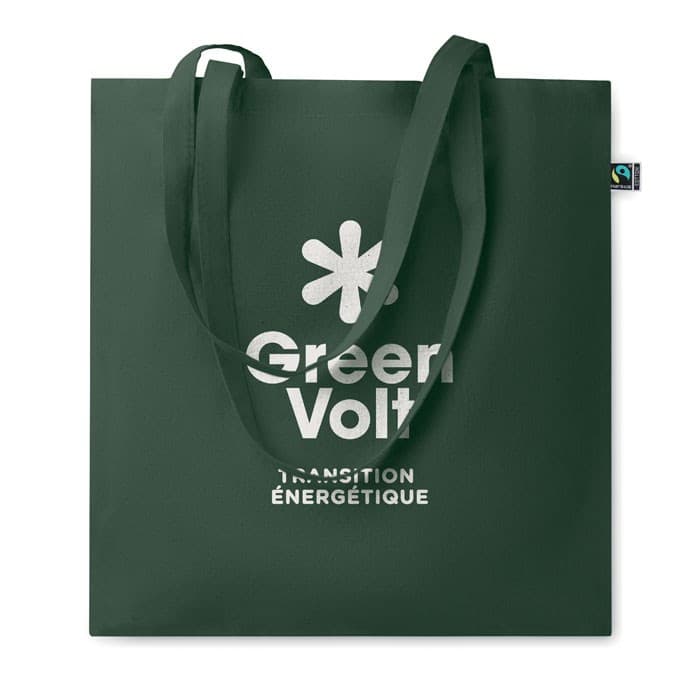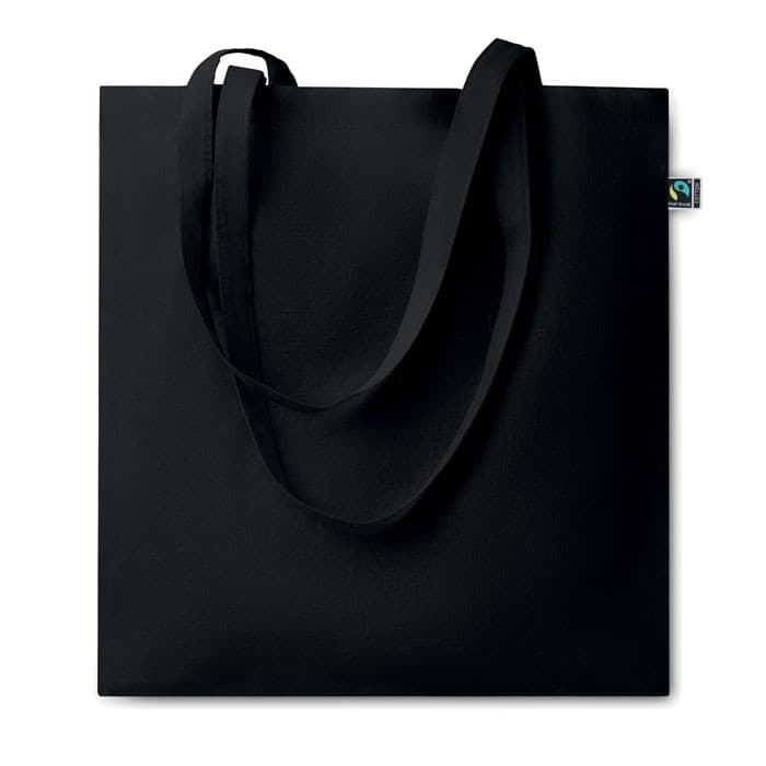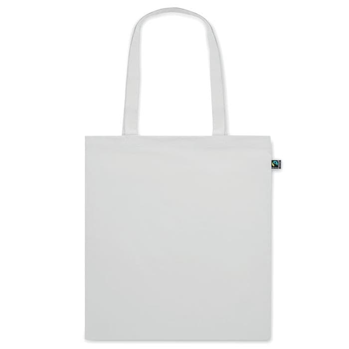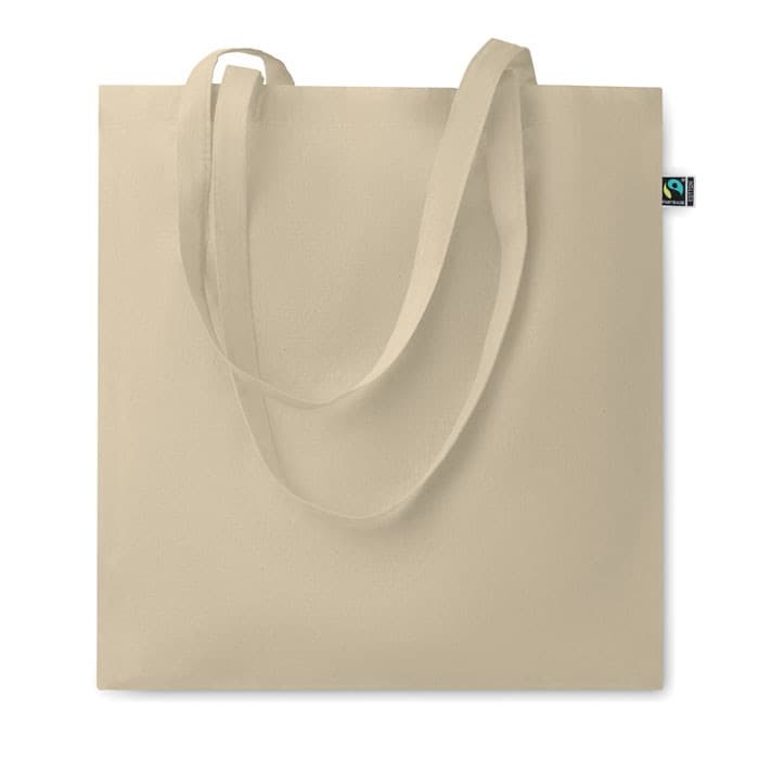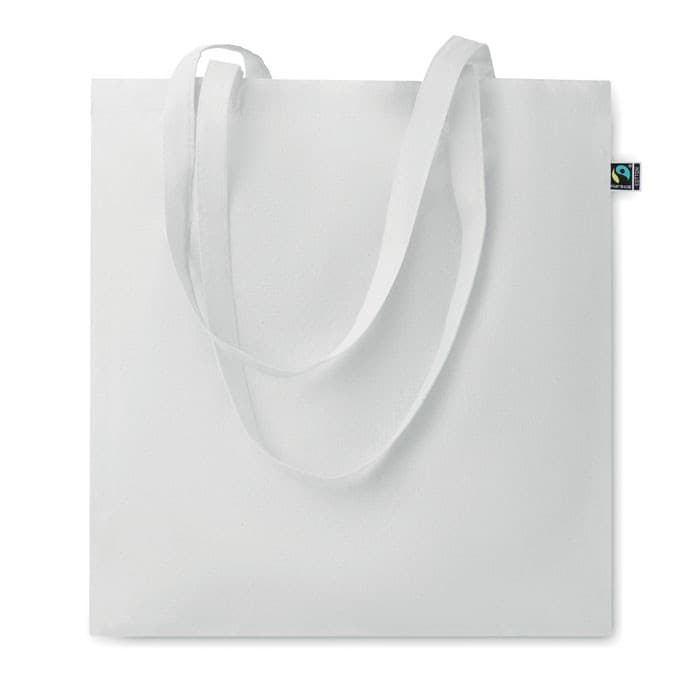 Boodschappentas van gekleurd Fairtrade katoen met lange hengsels. 140gr/m².