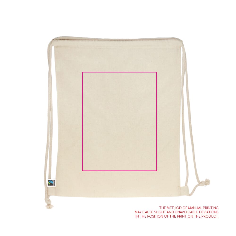 Draag je essentials in stijl met onze katoenen fairtrade trekkoordtas (34x45 cm). Ethisch gemaakt en milieuvriendelijk, is het je perfecte metgezel voor boodschappen, de sportschool of een dagje uit.