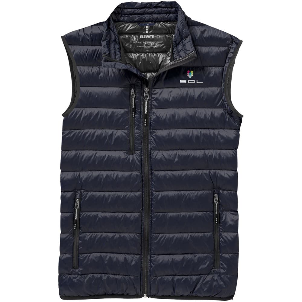 De Fairview heren bodywarmer van lichtgewicht dons - perfecte functionaliteit om je outdoorkleding te verbeteren. Deze bodywarmer heeft elastische bindingen aan de onderkant, voor een comfortabele en licht aansluitende pasvorm die bescherming biedt tegen kille wind. De buitenkant is gemaakt van geweven nylon dull cire 20D met een waterafstotende afwerking, wat zorgt voor een uitzonderlijke duurzaamheid en goede bescherming tegen de elementen. Dankzij het lichtgewicht materiaal kun je je gemakkelijk bewegen en moeiteloos de hele dag door dragen. De donsdichte geperste stof voorkomt dat het dons en de veren kunnen ontsnappen, wat zorgt voor langdurige warmte en extra duurzaamheid. De donsisolatie is RDS-gecertificeerd (Responsible Down Standard) en bestaat uit dons en veren, wat lichtgewicht warmte biedt zonder afbreuk te doen aan ethische normen. Een betrouwbare metgezel voor elk buitenavontuur. Perfect voor het bedrukken van bodywarmers.