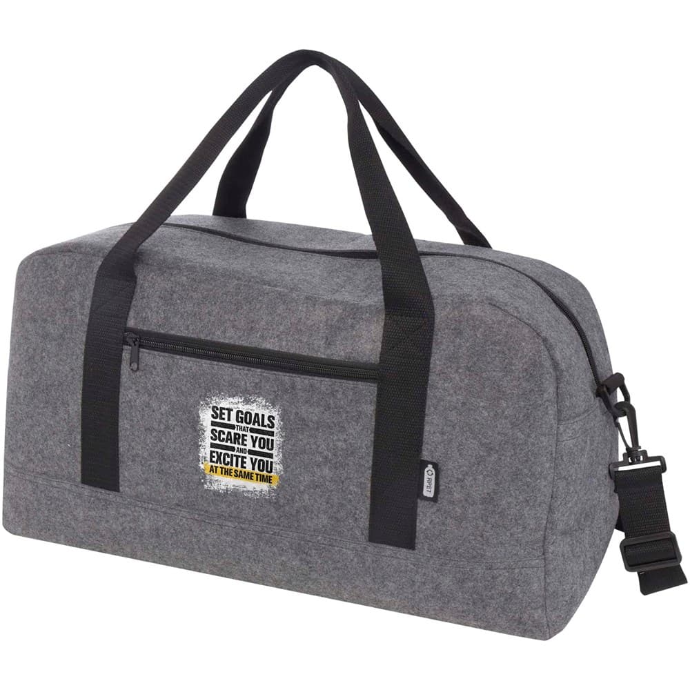 Multifunctionele duffel bag gemaakt van zacht en duurzaam hoogwaardig GRS gecertificeerd gerecycled vilt. Met een groot hoofdvak, een voorvak met rits, een zijvak, afneembare en verstelbare schouderbanden en comfortabele katoenen handgrepen om de tas op verschillende manieren te dragen. Uitgerust met kleine voetjes/noppen aan de onderkant van de tas, waardoor deze iets van de grond af staat. Zo komt er geen vuil of vocht in contact met de tas. Inhoud: 35 liter.