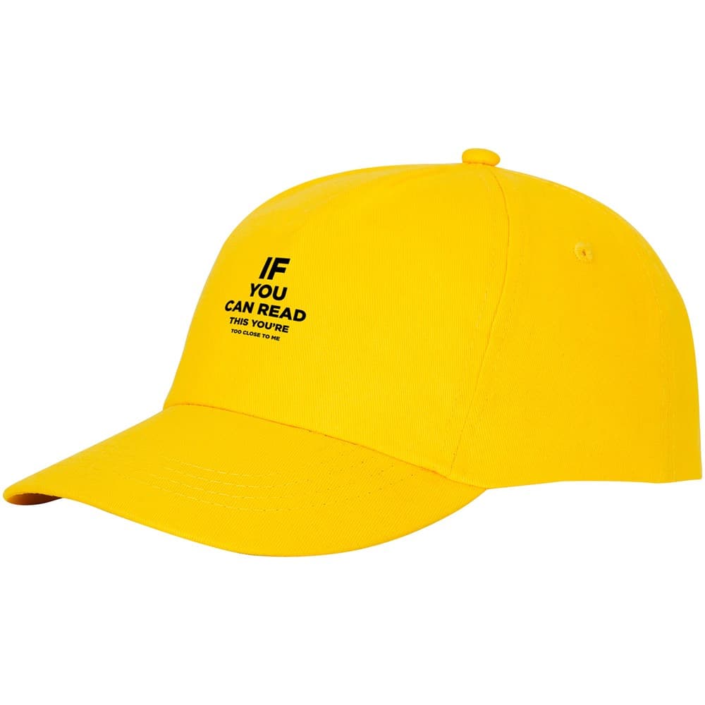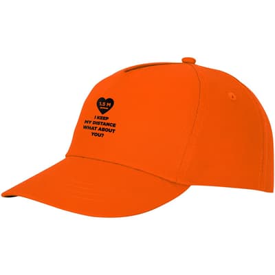 De Feniks 5-panelen pet heeft geborduurde oogjes voor verbeterde ventilatie, zodat je koel en fris blijft tijdens elke activiteit. Met een hoofdomtrek van 58 cm biedt hij een comfortabele pasvorm voor verschillende hoofdmaten. De stoffen klittenbandsluiting kan moeiteloos worden versteld voor de perfecte pasvorm. De Feniks pet is gemaakt van 175 g/m² katoenen keperstof en combineert duurzaamheid met een zacht, ademend gevoel.