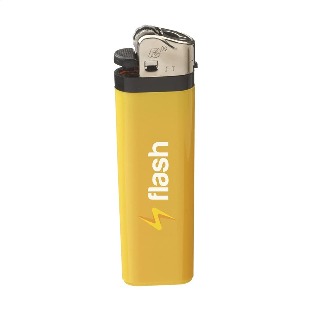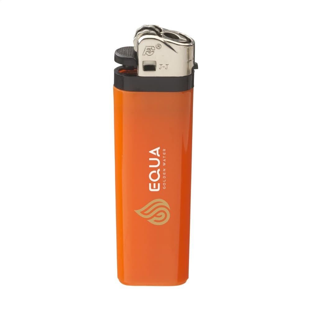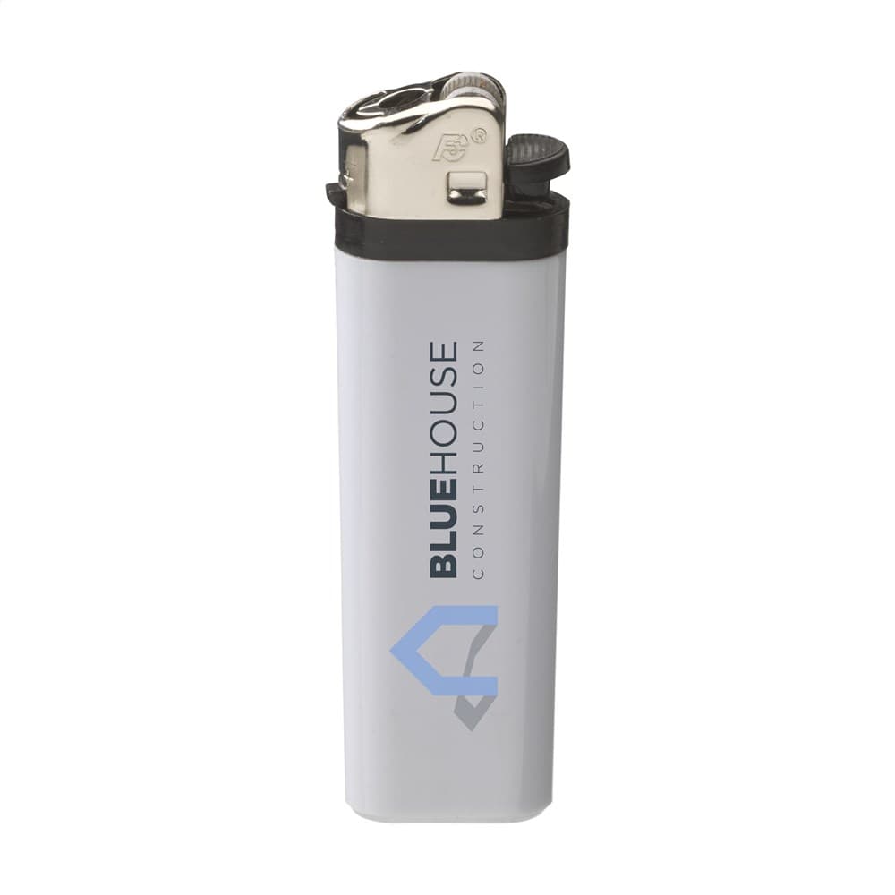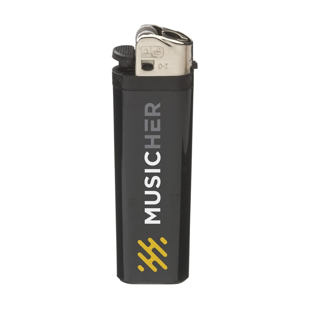 Kwaliteitsaansteker van het merk Flameclub® met vlamregelaar. Voorzien van kinderbeveiliging. NEN-gecertificeerd: EN13869. TÜV-gecertificeerd en ISO-gecertificeerd: ISO9994. Aanstekers worden alleen mét opdruk geleverd.