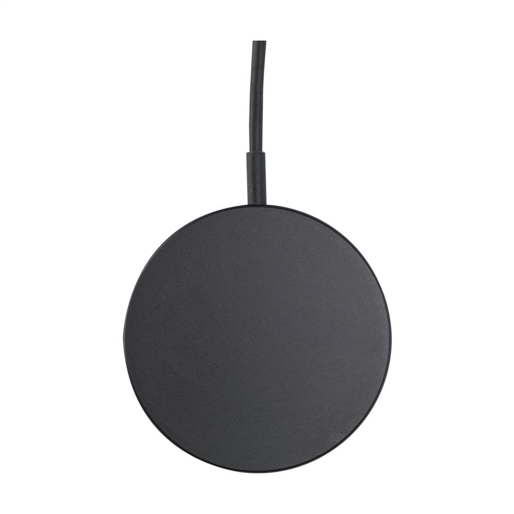 Magnetische 10W oplader met behuizing gemaakt van gerecycled ABS. Laad je smartphone draadloos op met deze oplader. Omdat er een magneet in zit, blijft je telefoon ermee verbonden, zelfs als je de telefoon gebruikt. Ideaal wanneer je jouw mobiele apparaat wilt opladen, maar ook wilt bellen of een video wilt bekijken. De geïntegreerde magneten (11 stuks hoge kwaliteit N52H en hittebestendig) in de oplader zijn perfect uitgelijnd en zorgen altijd voor de juiste oplaadpositie op de telefoon. Deze lader komt met een extra magnetische metalen ring om het opladen van niet-magnetische draadloze oplaadbare smartphones te ondersteunen. Compatibel met iPhone 12 en hoger. Output: DC 9V/1.1A (15W) voor snelladen. Inclusief kabel (USB-A & Type-C) en gebruiksaanwijzing. Het product en de accessoires zijn PVC-vrij. Per stuk in kraft doos.