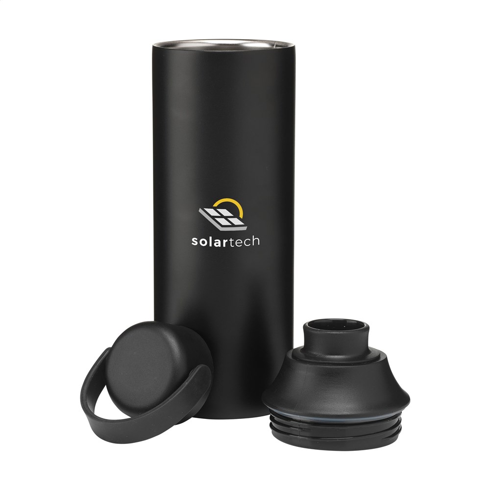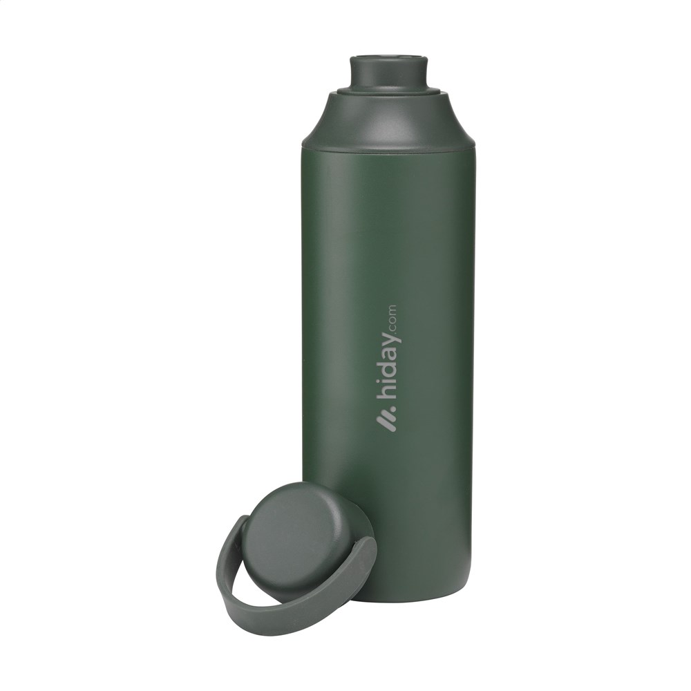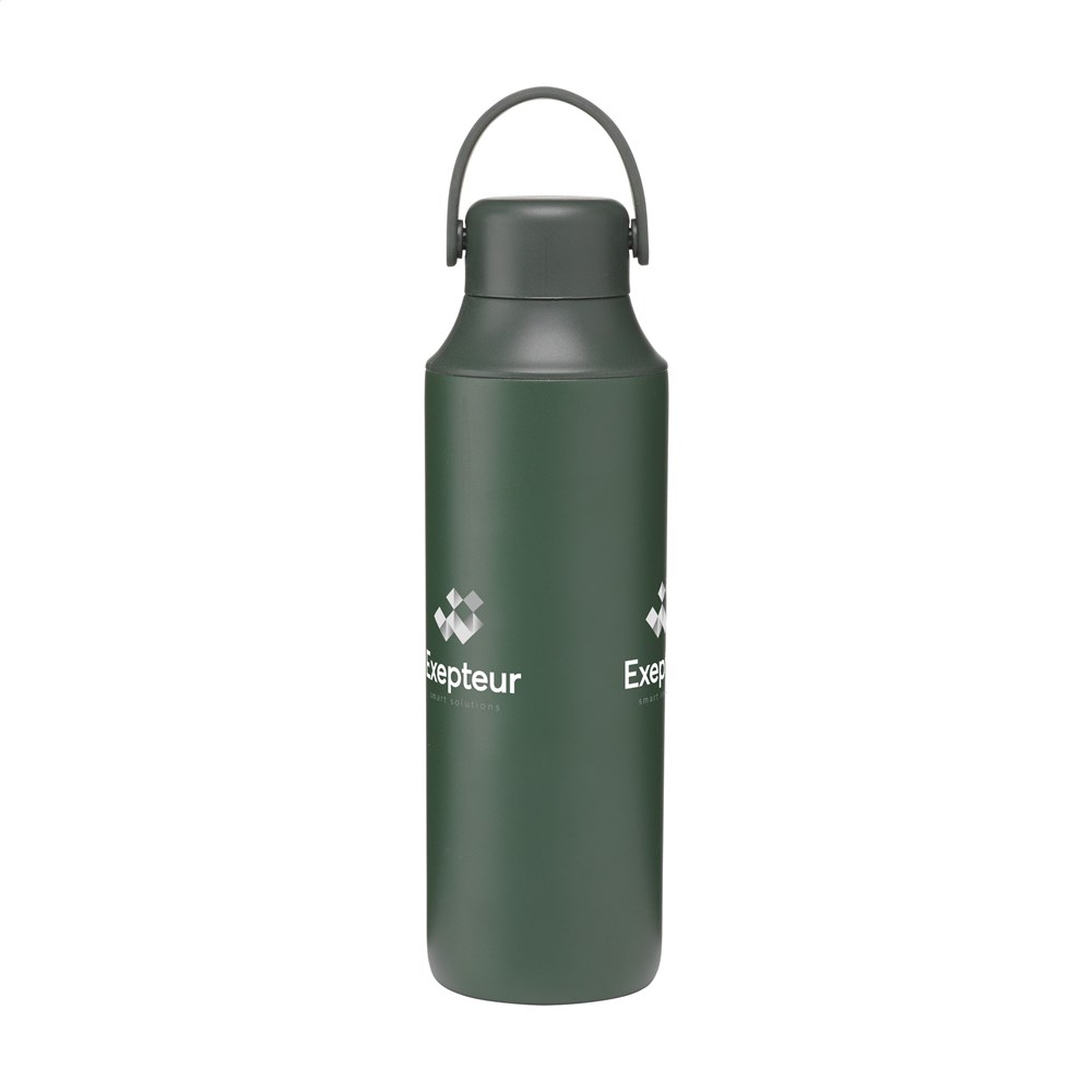 WoW! Dubbelwandige thermosfles van gerecycled roestvrij staal. De lekvrije fles heeft een siliconen draaglus en 2 openingen met schroefdop: een drinkopening en een royale opening voor het gemakkelijk reinigen van de fles of het toevoegen van ijsblokjes. Past in de meeste bekerhouders en is afgewerkt met een mooie poedercoating. Geschikt voor het op temperatuur houden van warme of koude dranken. RCS-gecertificeerd. Totaal gerecycled materiaal: 80%. Inhoud 600 ml. RVS kan vele malen gerecycled worden terwijl de kwaliteit van het materiaal grotendeels behouden blijft. Door het gebruik van gerecycled RVS worden minder nieuwe grondstoffen gebruikt. Dit betekent minder energieverbruik en minder gebruik van water. Per stuk in kraft doos.