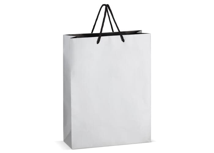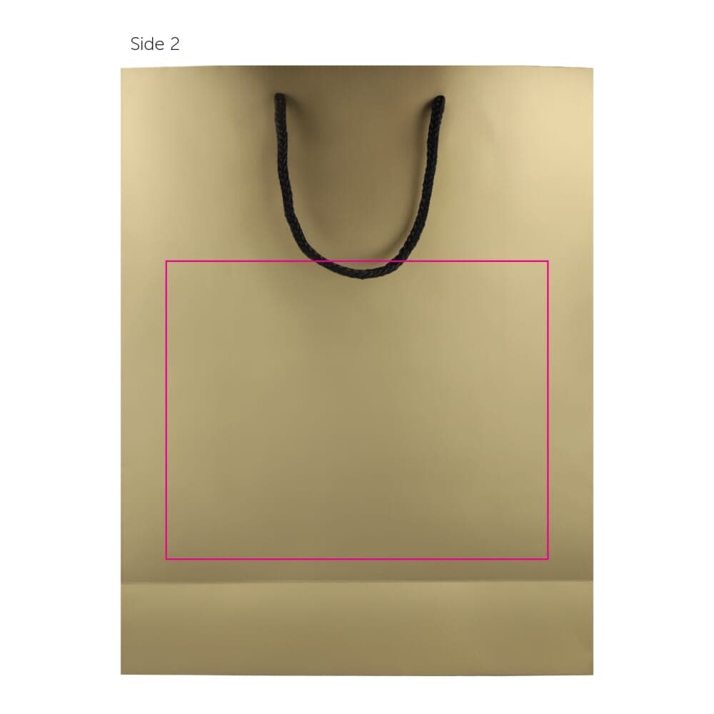 Elegante cadeautas gemaakt van FSC-gecertificeerd papier, met 5 mm dikke handvatten van gerecycled polyester. Ontworpen om tot 5 kg te dragen, met een luxe uitstraling door de zwarte handvatten en een zwarte binnenafwerking. Perfect voor het presenteren van cadeaus