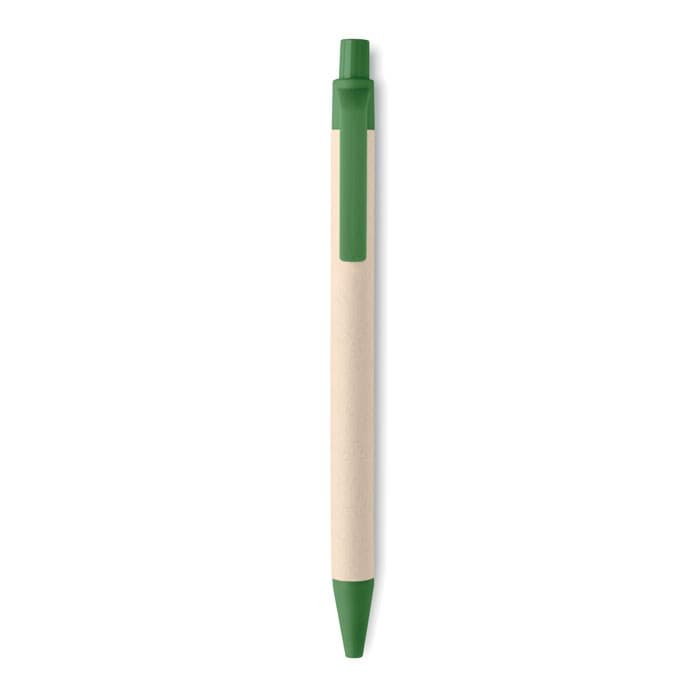 Wil je balpennen bedrukken die passen bij een duurzaam en milieubewust imago? Deze gerecyclede papier-PLA balpen is een uitstekende keuze voor bedrijven die verantwoord willen ondernemen en tegelijkertijd een stijlvol promotieartikel willen inzetten. De pen heeft een drukknopmechanisme en is vervaardigd uit gerecyclede melkpakken met PLA-onderdelen van biologisch afbreekbare maïs.