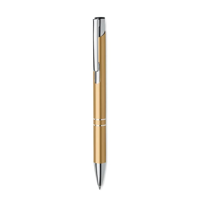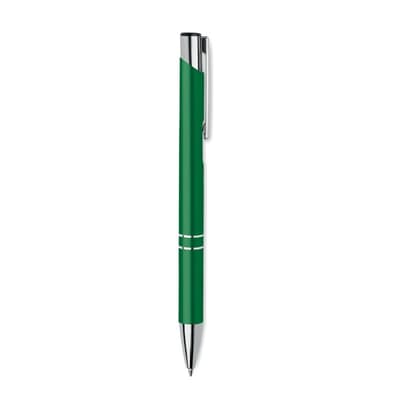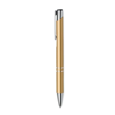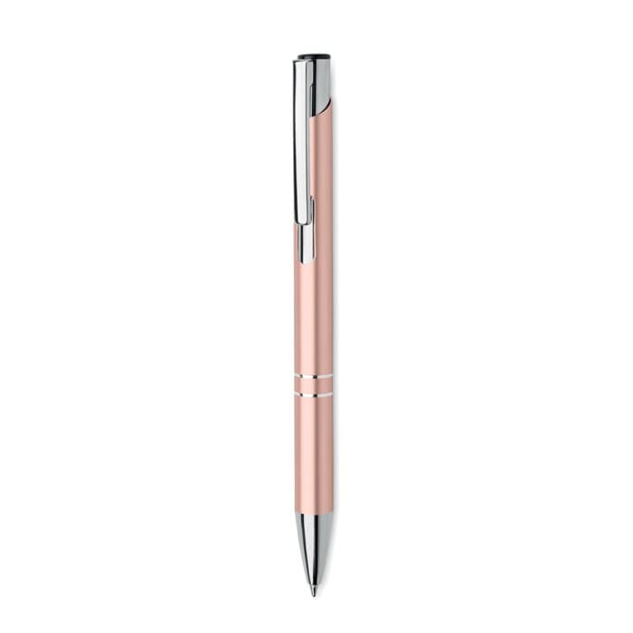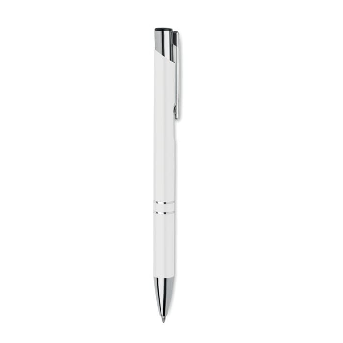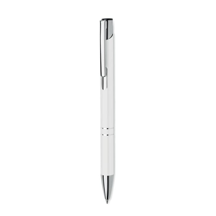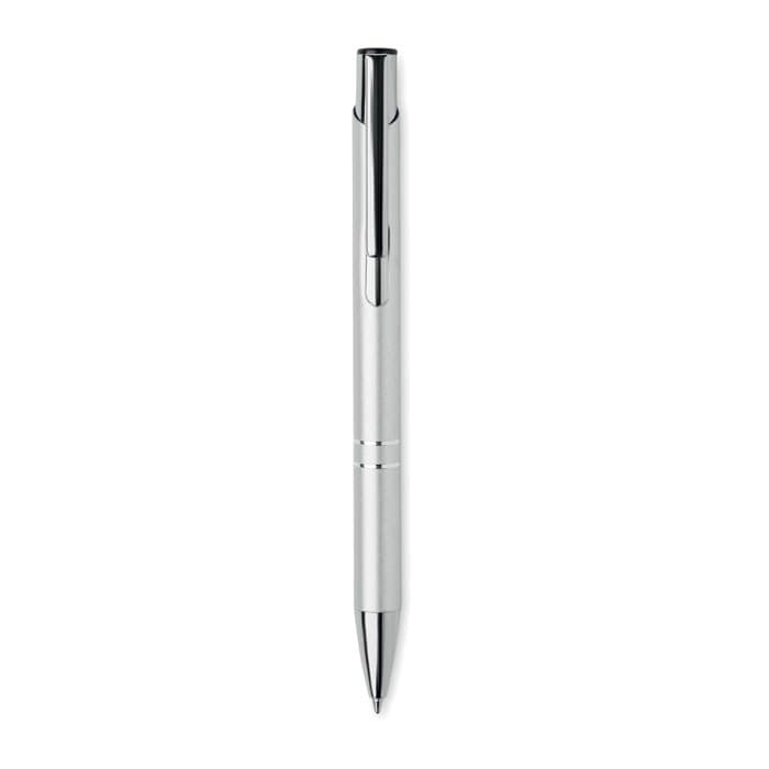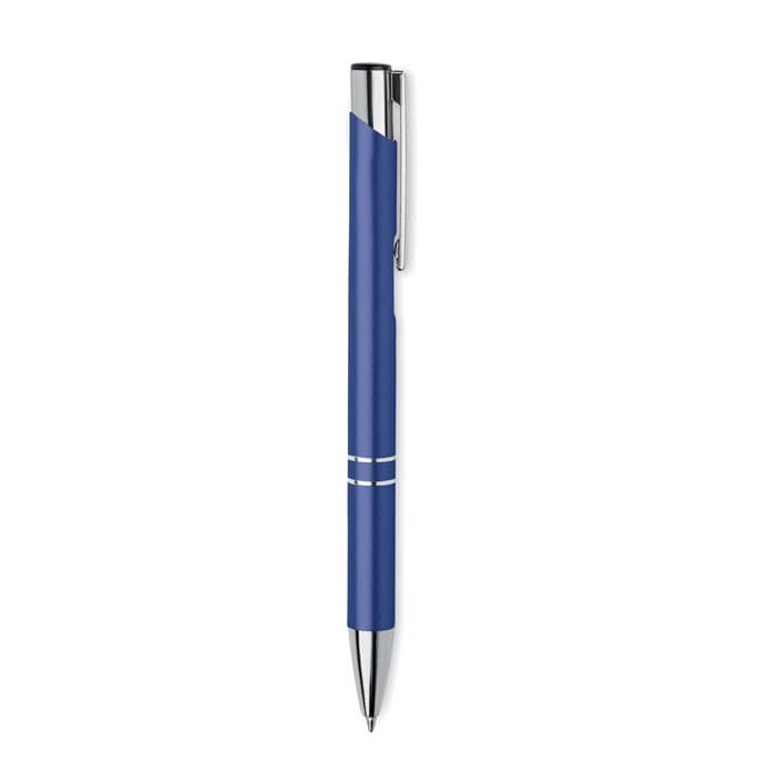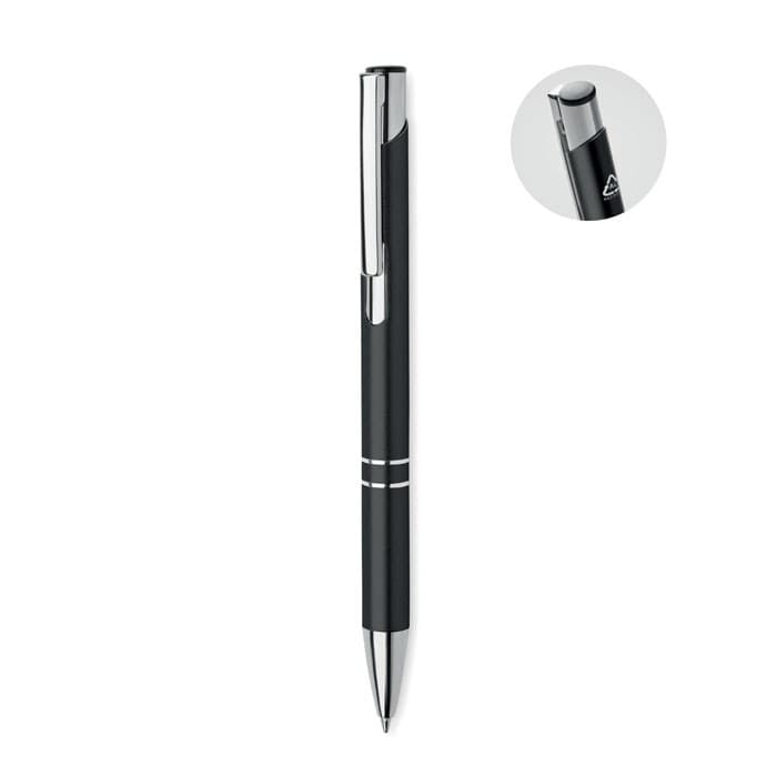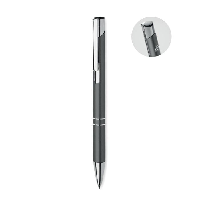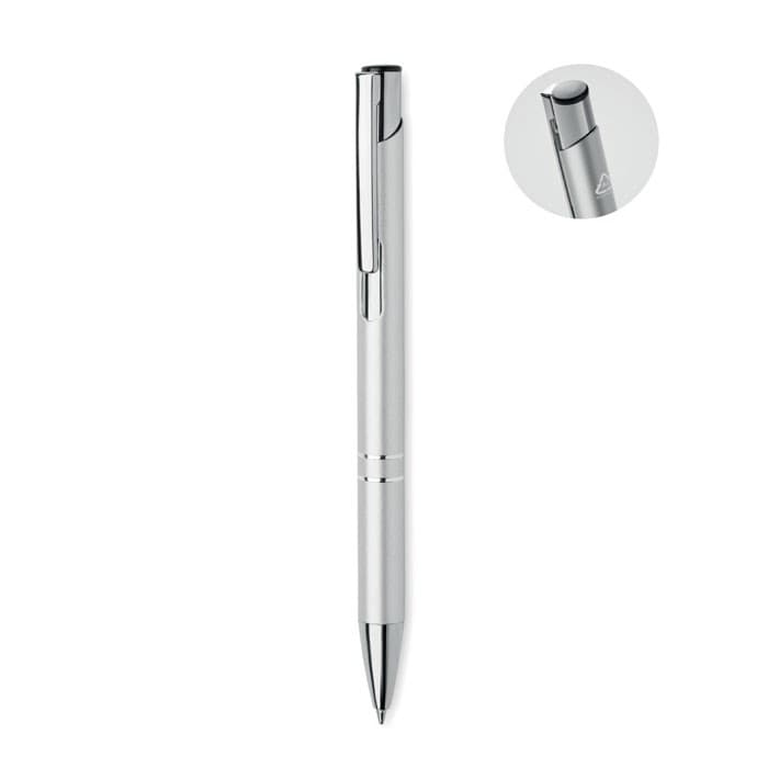 Balpen met drukknop in gerecycled aluminium. Blauwe inkt.