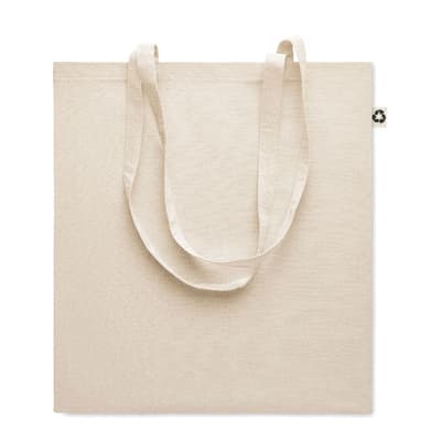 Gerecyclede post-consumer katoenen boodschappentas (65% gerecycled katoen, 35% gewoon katoen) met lange hengsels. 140 gr/m². Perfect voor boodschappentassen bedrukken.