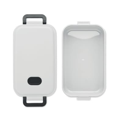 Gerecyclede PP lunchbox met luchtdicht deksel, siliconen ventiel en twee zijgespen. Inhoud: 800 ml.
