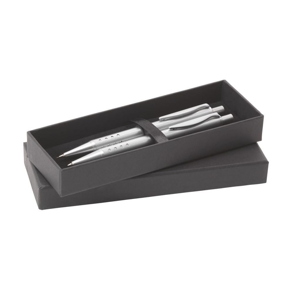 Geschenkverpakking voor balpennen, touchscreen-pennen en vulpotloden. Van stevig karton, met fluwelen inlage. Geschikt voor 1 of 2 schrijfinstrumenten.