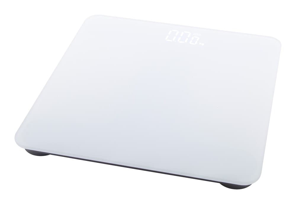 Digitale weegschaal met display met achtergrondverlichting en weegplateau van gehard glas. Capaciteit: 180 kg, schaalverdeling 0,1 kg, meeteenheden: kg/lb. Met 2 AAA-batterijen.