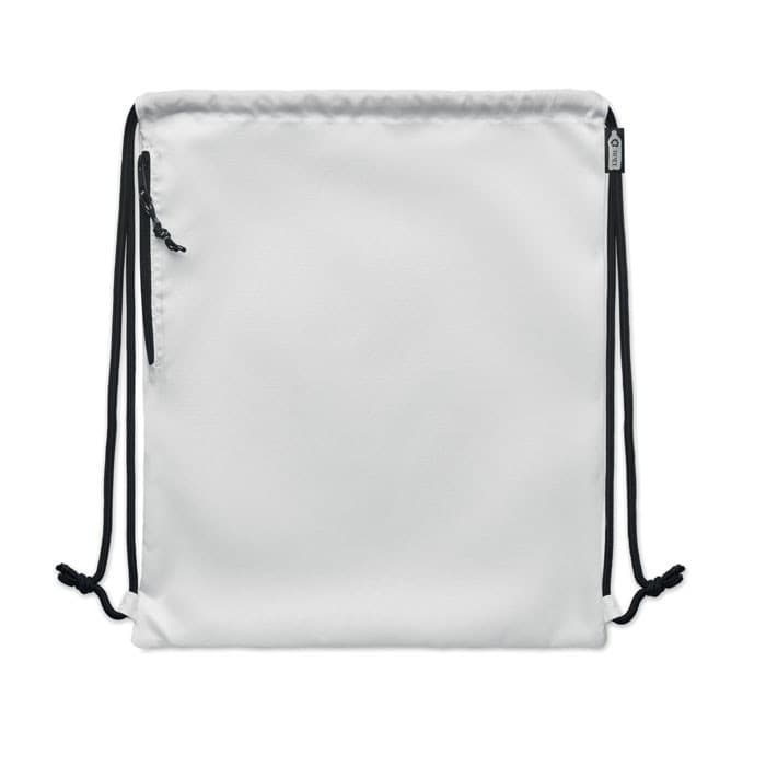Grote rugzak met koord van 300D RPET polyester voorzien van zijvak met rits. Dikke koorden.