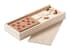 Spelset in houten kist met dominostenen en een pak speelkaarten.