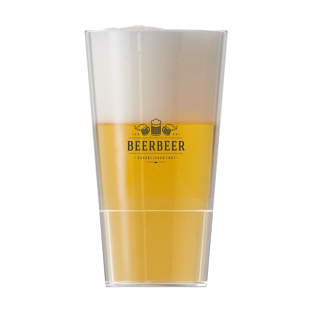 Wil je glazen bedrukken voor evenementen waar veiligheid en gemak belangrijk zijn? Dit kunststoffen bierglas van het merk HappyGlass is stapelbaar dus ruimtebesparend. Vervaardigd van helder, transparant BPA-vrij copolyester Tritan. Nagenoeg onbreekbaar, licht in gewicht. Zeer geschikt voor gebruik op (sport)events, festivals en concerten waar dikwijls een glasverbod geldt. Dit kwaliteitsglas is geschikt voor meermalig gebruik. Dit product is vaatwasserbestendig. Voor behoud van de opdruk wordt met de hand afwassen aanbevolen. Inhoud 330 ml.