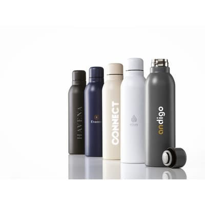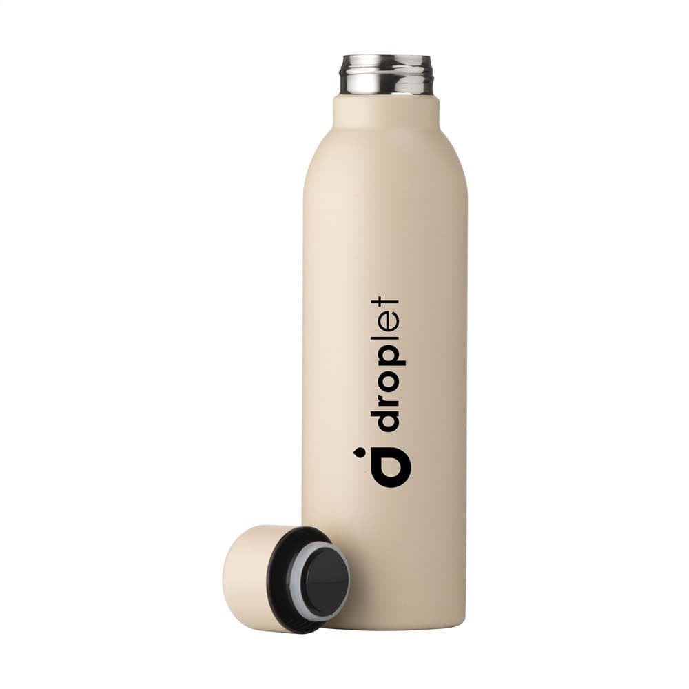 Dubbelwandige waterfles/thermosfles van gerecycled RVS. Vacuüm geïsoleerd en lekvrij. Afgewerkt met een mooie poedercoating. Geschikt voor het op temperatuur houden van koude of warme dranken. Totaal gerecycled materiaal: 90%. Inhoud 470 ml. RVS kan oneindig vaak gerecycled worden terwijl de kwaliteit van het materiaal behouden blijft. Door het gebruik van gerecycled RVS worden minder nieuwe grondstoffen gebruikt. Dit betekent minder energieverbruik, minder gebruik van water en reductie van de CO2-uitstoot. Een verantwoorde keuze. Per stuk in kraft doos.