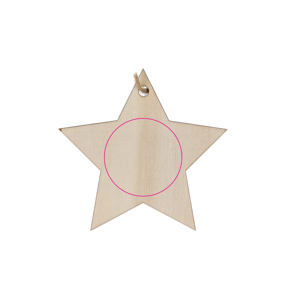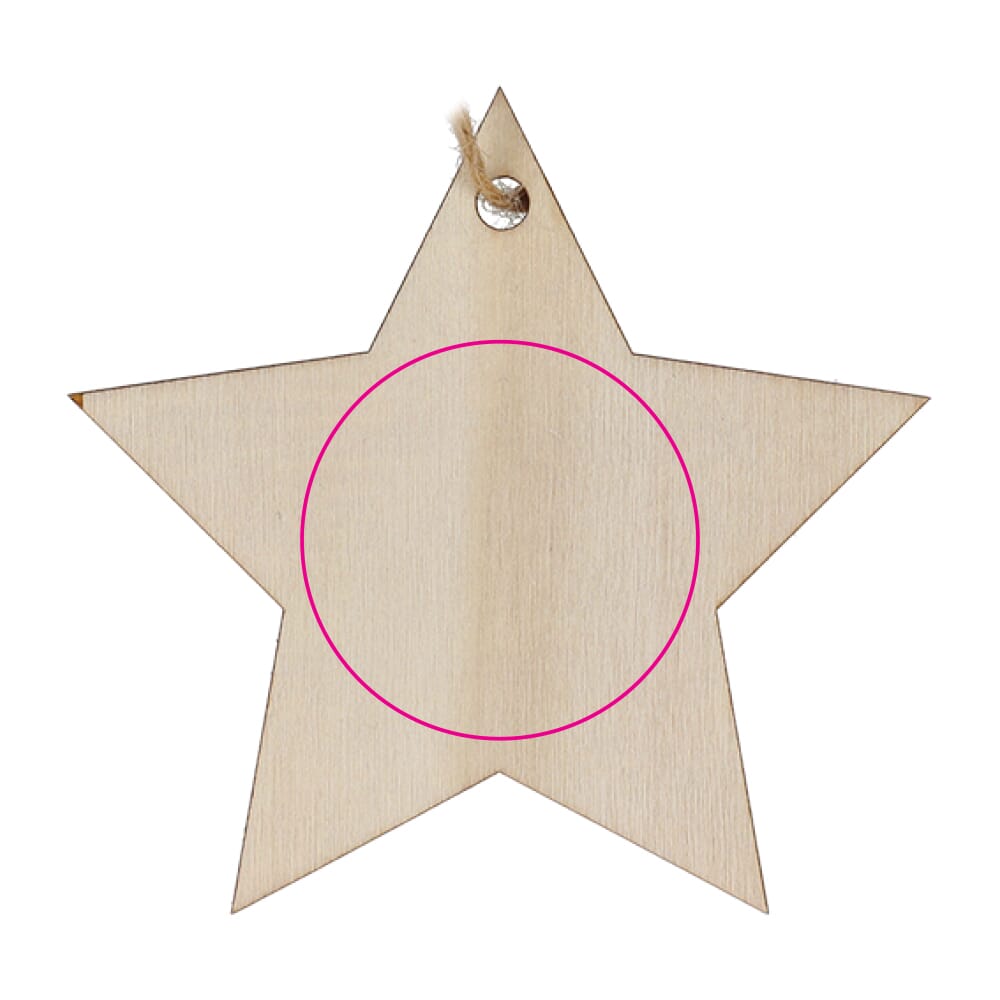 Vier het seizoen met dit charmante houten ornament in de vorm van een ster. Dankzij de klassieke vorm en het ruime bedrukkingsoppervlak is het perfect om een uniek aandenken aan de feestdagen te creëren en cadeau te geven. Ideaal voor het versieren van kerstbomen, kransen of feestelijke displays.