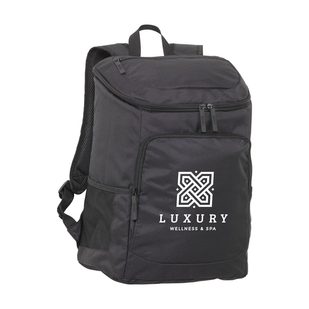 WoW! Milieuvriendelijke backpack/koeltas van 600D RPET polyester (gemaakt van gerecyclede PET-flessen). Het ruime koelvak is voorzien van een lekvrije, 4 mm dikke PEVA voering. De tas heeft een ritsvak aan de voorzijde en een meshvak aan de zijkant, handig voor het meenemen van je drinkfles. Met foam rugzijde, gewatteerde, verstelbare schouderriemen en een draaglus. Inhoud ca. 23 liter.