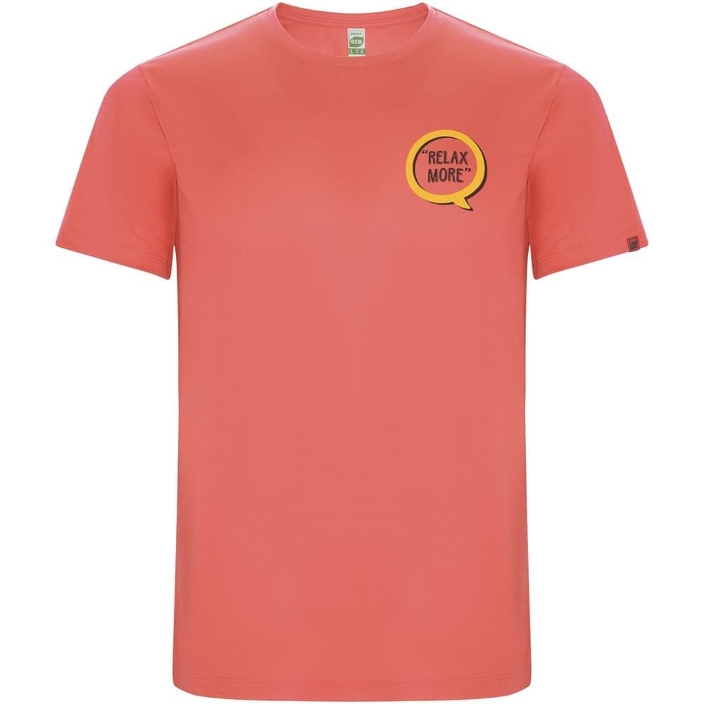 De ECO-logolabel op de mouw en het verwijderbare ECO-label benadrukken de milieuvriendelijke eigenschappen, terwijl de verpakking van gerecycled materiaal bijdraagt aan een duurzame keuze. Gemaakt van technische stof die ademend en vochtregulerend is, is dit T-shirt perfect voor actieve bezigheden. Het model is 180 cm lang en draagt maat M. Een uitstekende keuze voor personalisatie en duurzaamheid in één. Ideaal om sportkleding te bedrukken.