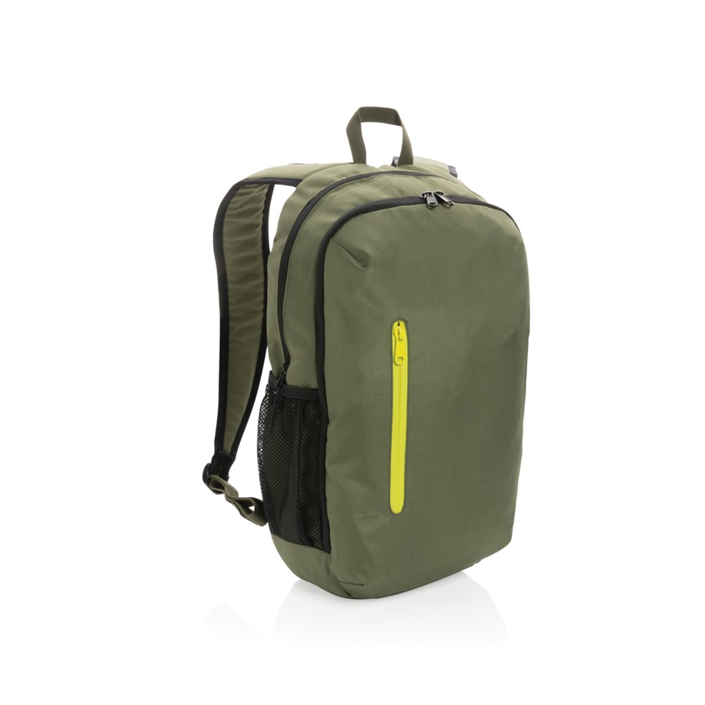De Impact AWARE™ 300D RPET casual rugzak biedt veel opbergruimte. Het voorvak met ritssluiting biedt veilige opbergruimte en snelle toegang tot kleine items. Het middenvak bevat 2 open vakken en het hoofdvak is voorzien van een 15 inch laptopvak. Comfortabele schouderbanden en 2 mesh vakken aan de buitenkant voor je flessen. Perfect om je gymspullen mee te nemen of om mee te gaan wandelen. De buitenkant is gemaakt van 100% 300D gerecycled polyester, de voering is van 100% 150D gerecycled polyester. Met AWARE™ tracer die het echte gebruik van gerecyclede materialen valideert. Elke tas bespaart 9,2 liter water en heeft 15,39 0,5L PET-flessen hergebruikt. 2% van de opbrengst van elk verkocht Impact-product wordt gedoneerd aan Water.org.