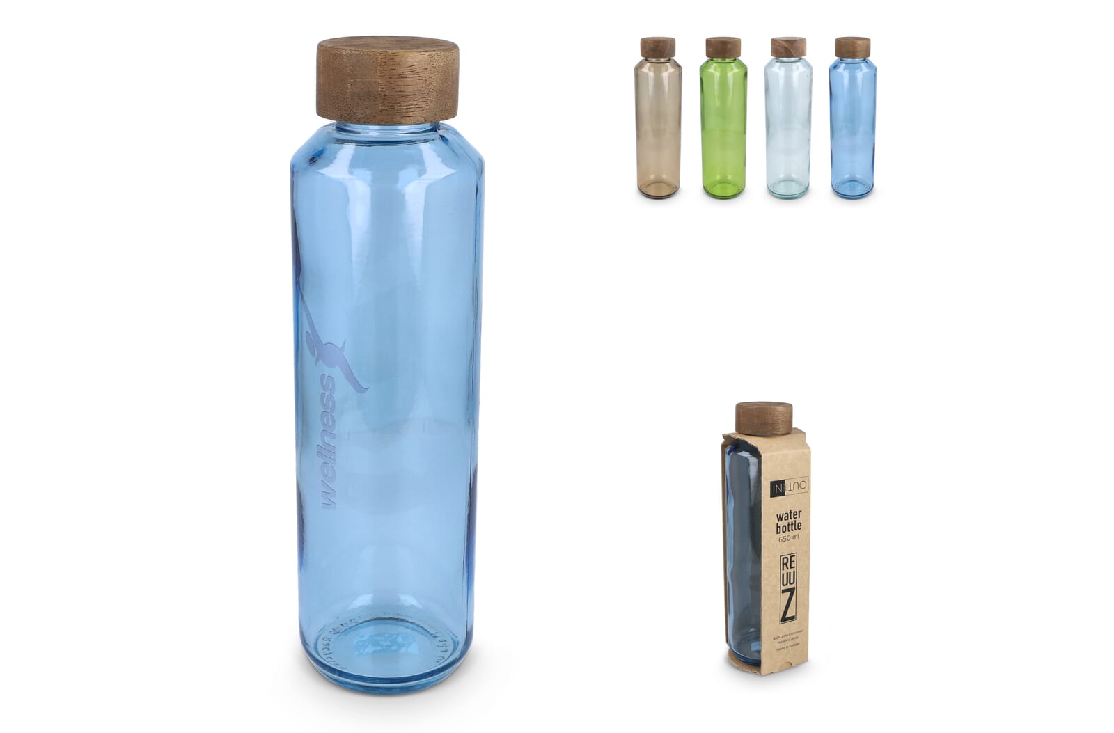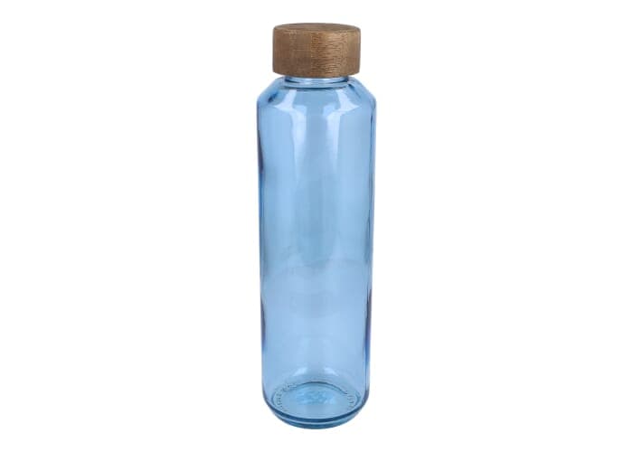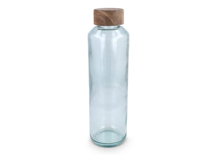 InSideOut Gerecyclede glazen Waterfles ReuuZ met houten dop 650 ml Transparant / Lichtblauw