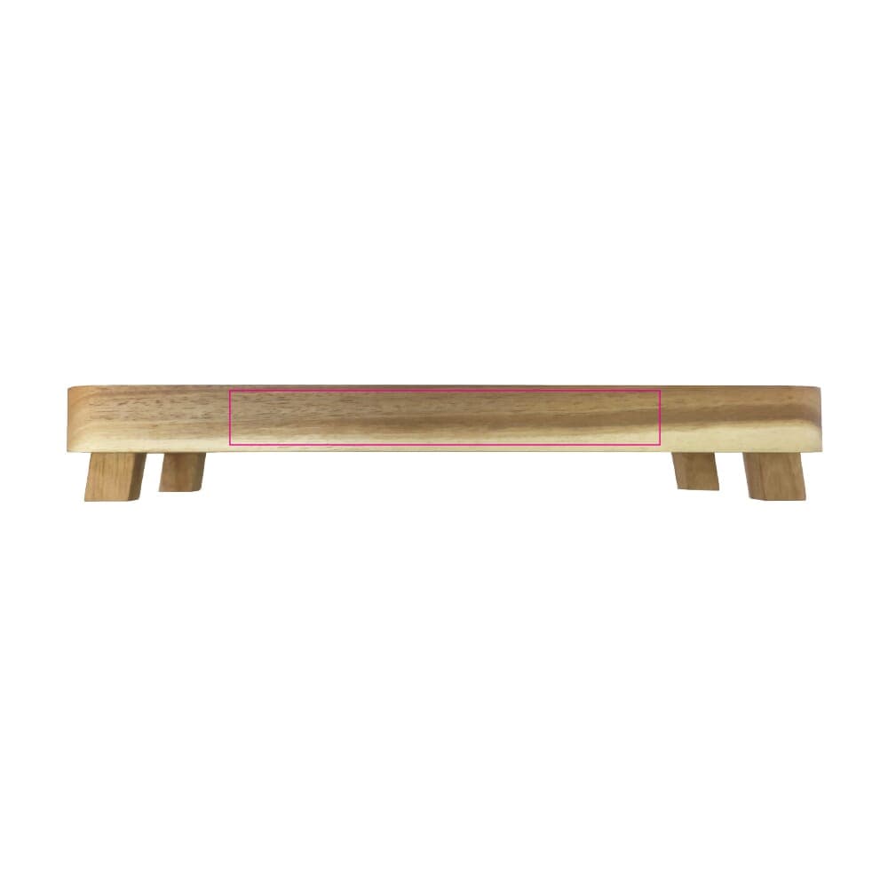 Dit Acacia houten snacktafeltje is een InSideOut original. Perfect voor het serveren nootjes, pinda's, tapas of kaasblokjes tijdens een gezellige borrel. Het tafeltje is (35cm lang), heeft voorgevormde bakjes en is het pronkstuk op iedere borreltafel. Het FSC-gecertificeerde Acacia hout heeft een prachtige nerfstructuur en warme kleur, wat het niet alleen praktisch maar ook een mooie decoratie maakt. Daarnaast is het Acacia hout duurzaam, waterbestendig en antibacterieel, waardoor je er langdurig plezier van hebt. Om ervoor te zorgen dat je zo lang mogelijk van de snacktafel geniet, is het aan te raden om deze voor het eerste gebruik in te smeren met houtolie en niet in de vaatwasser te plaatsen. Kortom, deze originele verschijning is een stijlvolle en functionele keuze voor elke borrel. Een logo kan op de rand van de tafel.