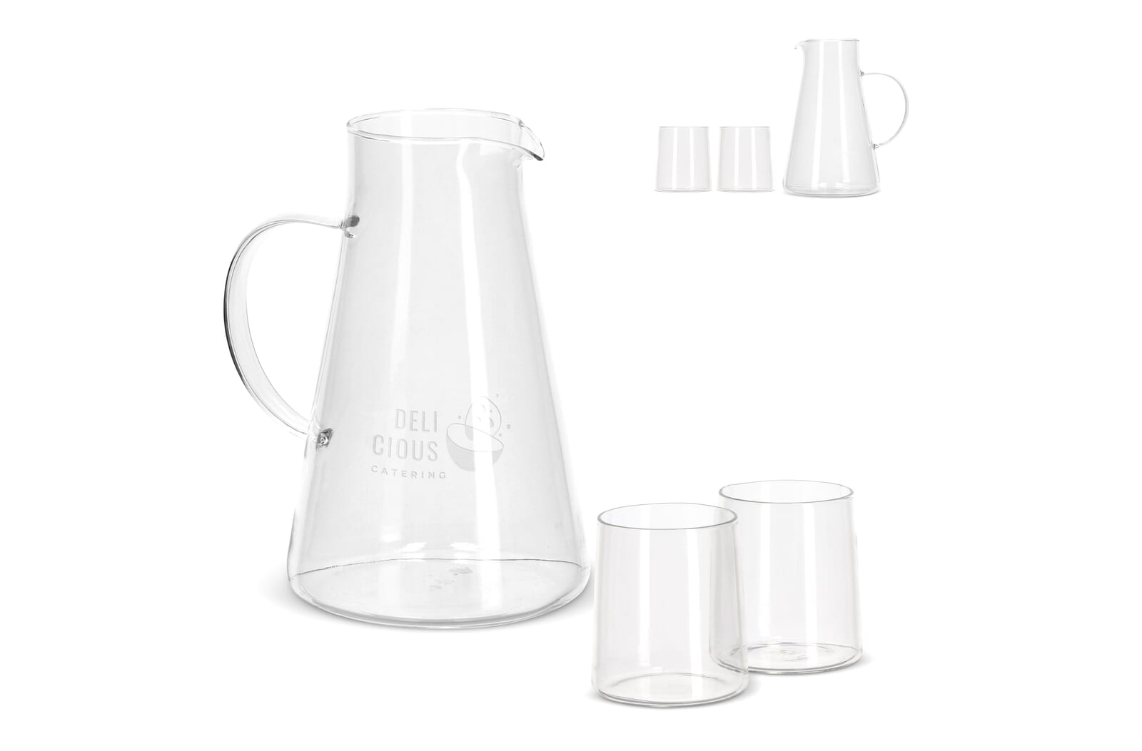 De InSideOut karafset Elin bestaat uit 2 glazen en een karaf met handvat. De set is gemaakt van Boriumsilicaat, een hittebestendig en zeer sterk glas. De uitvoering is eenvoudig maar stijlvol, zonder tierelantijntjes of extra randjes en daarom perfect te combineren met ander tafelgerei of servies. De kan heeft een inhoud van 1.2L en de glazen iester 270 ml en zijn magnetron veilig. Zowel de kan als de glazen kunnen worden voorzien van een gravering .