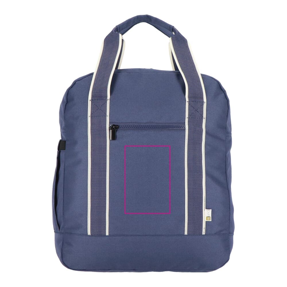 Deze stijlvolle en praktische rugzak uit de InSideOut-serie Koli is de perfecte keuze voor iedereen die vaak reist en functionaliteit en duurzaamheid waardeert. Gemaakt van milieuvriendelijk rPET, een gerecycled materiaal, biedt de Koli rugzak niet alleen voordelen voor het milieu, maar ook een robuuste en langdurige kwaliteit. Het ruime hoofdvak bevat een handig laptopcompartiment, terwijl de voorzijde een voorvak met ritssluiting heeft en de zijkant is voorzien van een rekbaar vak voor een fles of paraplu. De stevige rits zorgt ervoor dat je het hoofdvak gemakkelijk kunt openen en direct toegang hebt tot de inhoud. Het voorvak is ideaal voor bedrijven die op zoek zijn naar een plek om hun logo of bedrijfsnaam te laten drukken, waardoor deze tas een uitstekende promotieoplossing biedt. Door de schouderhengsels in het achtervak te plaatsen, kun je de rugzak eenvoudig omtoveren tot een draagtas. Deze veelzijdige functie, in combinatie met de stevige hengsels, maakt de Koli rugzak niet alleen een rugzak, maar ook een praktische tas.