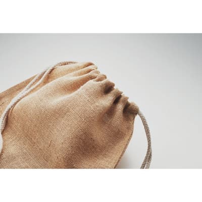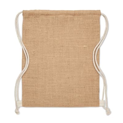 Jute rugzak met trekkoordsluiting met katoenen koord.