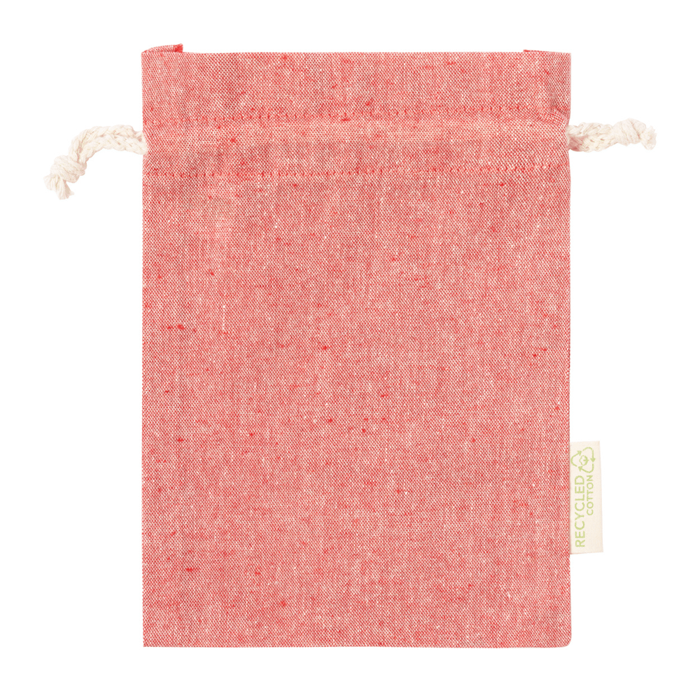 Herbruikbare tas van gerecycled katoen met trekkoordsluiting. 100% gerecycled katoen, 120 g/m².