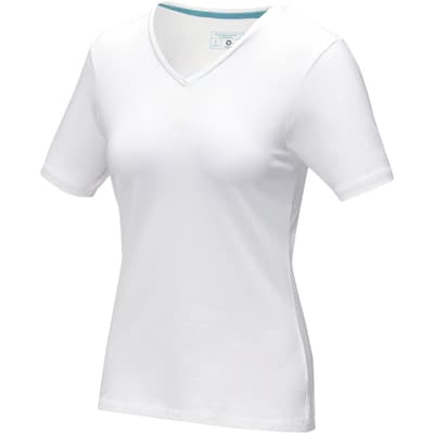 Het Kawartha GOTS biologische V-hals t-shirt met korte mouwen voor dames is een stijlvolle en duurzame keuze. Gemaakt van 95% GOTS gecertificeerd biologisch katoen, met een stofgewicht van 200 g/m², is dit t-shirt niet alleen goed voor het milieu, maar ook zacht en comfortabel om te dragen. De 5% elastaan zorgt voor een zachte en rekbare pasvorm. Met zijn V-hals en korte mouwen is dit t-shirt zowel duurzaam als modern. De GOTS-certificering zorgt voor een 100% gecertificeerde toeleveringsketen van grondstof tot onze druktechnieken, waardoor dit kledingstuk een milieuvriendelijke keuze is.