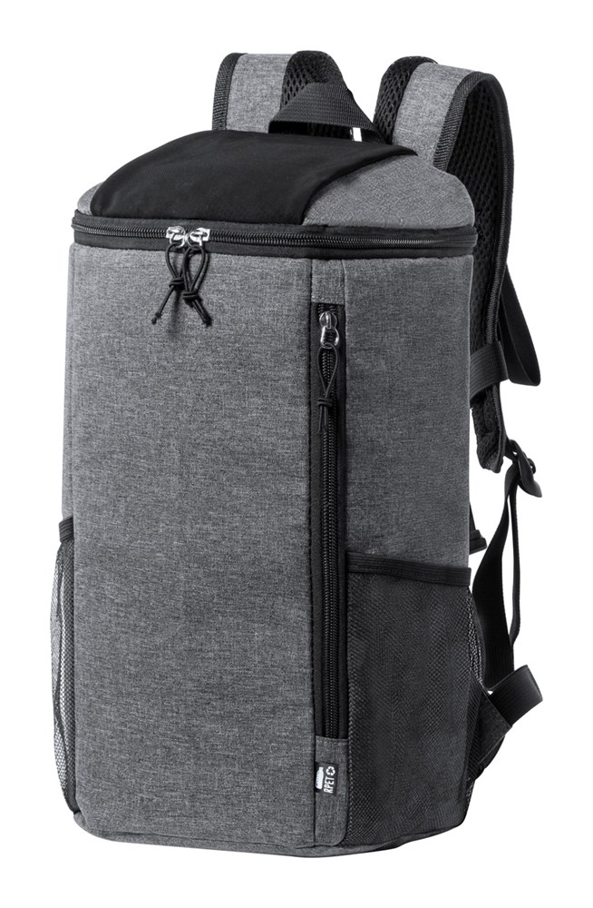 RPET-koelrugzak met hoofdvak met ritssluiting en PEVA-vulling, zijvakken van gaas en gewatteerde schouderbanden. Met kenmerkend RPET-label. 600D RPET-polyester.