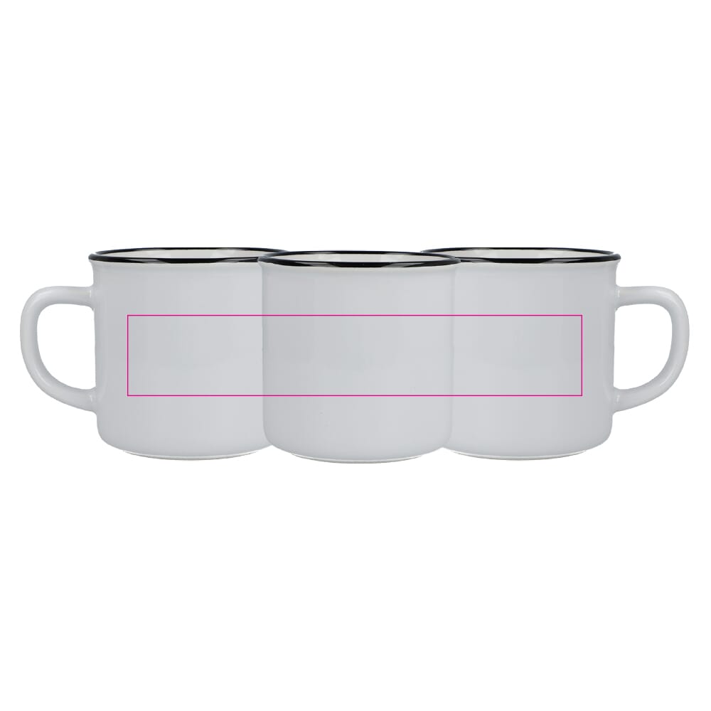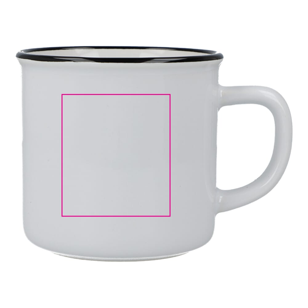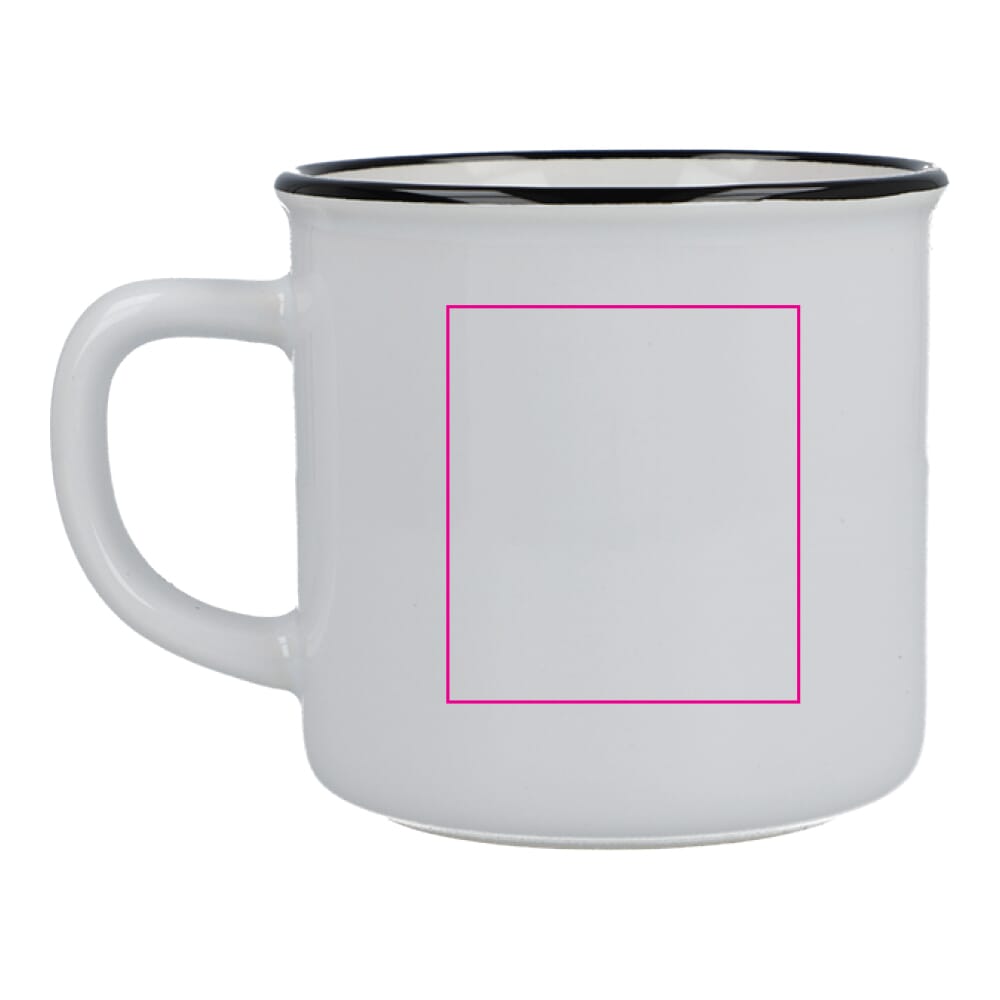 Deze keramische mok in emaille-stijl combineert vintage charme met levendige kleuren. Perfect voor koffie, thee of elk warm drankje, het heeft een klassiek ontwerp met een glanzende afwerking en een zwarte rand, die de essentie van traditionele emaille mokken uitstraalt. Ideaal voor thuis of op kantoor, het voegt een tijdloze uitstraling toe aan elke mokkencollectie.