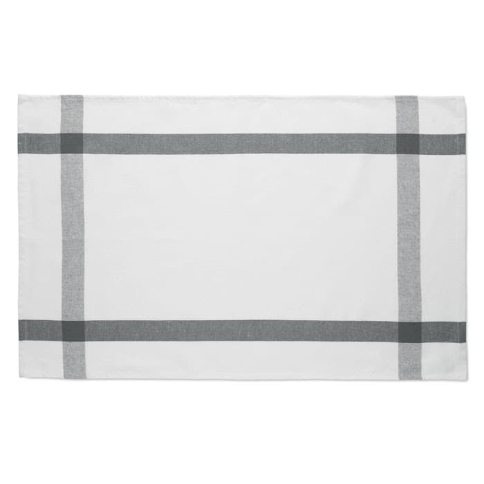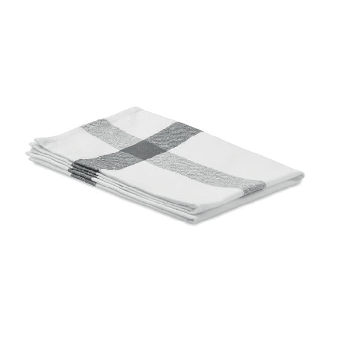 Gerecyclede keukenhanddoek in polykatoen (50% gerecycled katoen en 50% gerecycled polyester). 180 gr/m².