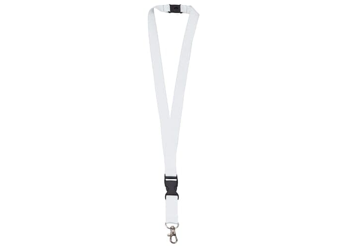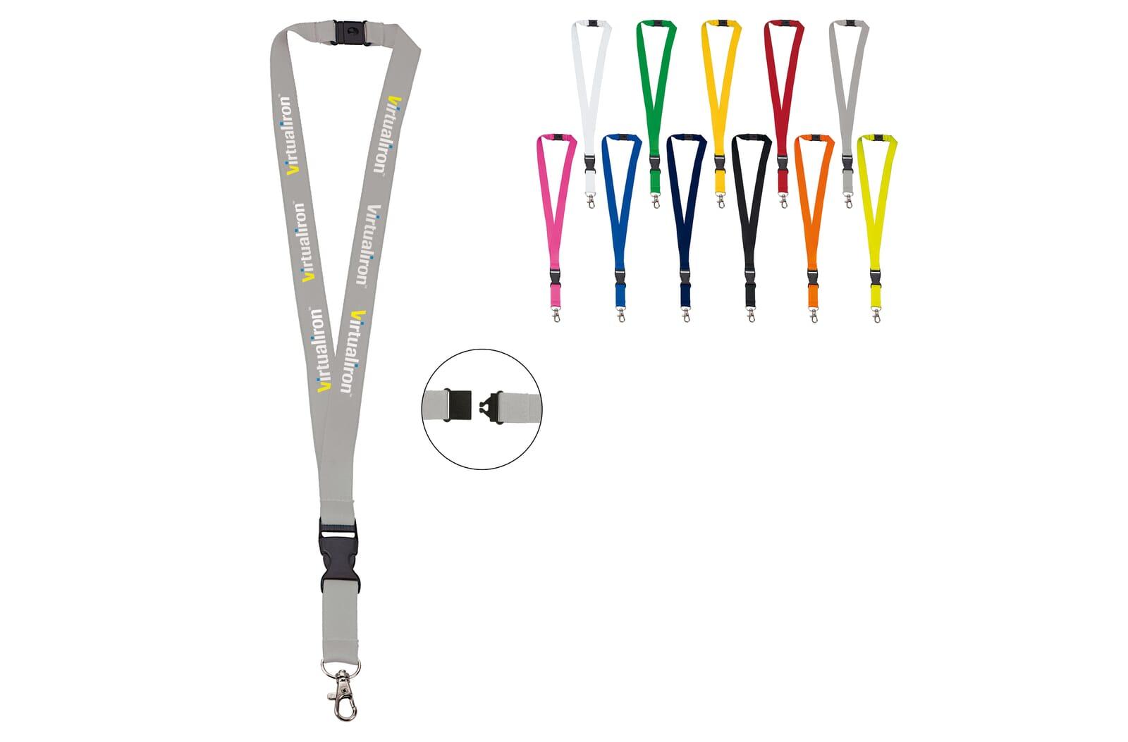 Polyester keycord met afneembare kunststof gesp, metalen haak en veiligheidssluiting. Perfect voor keycords bedrukken.