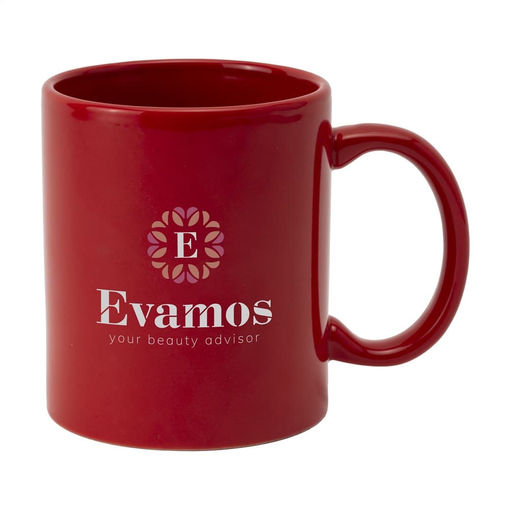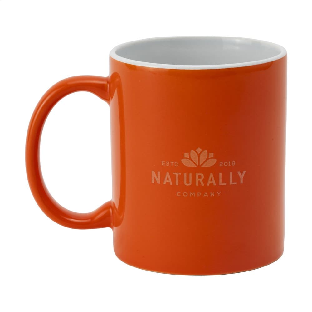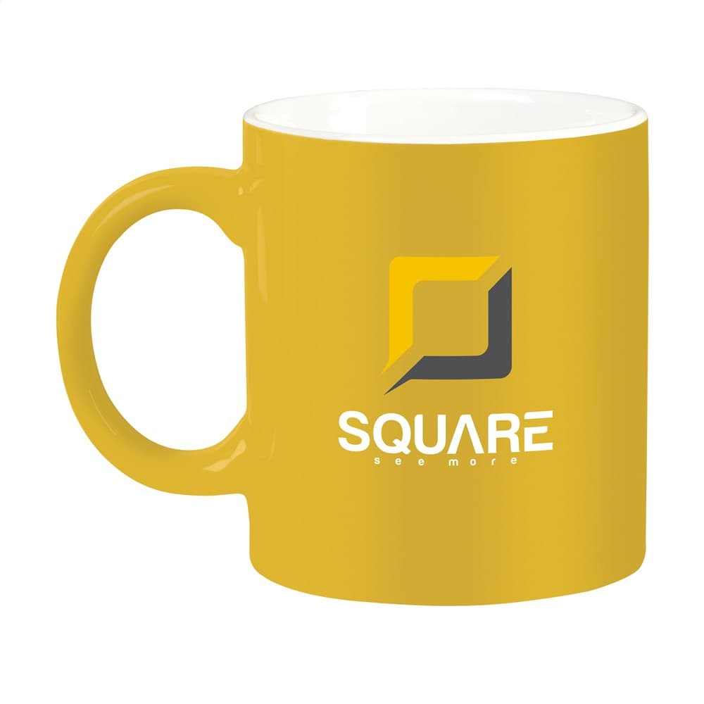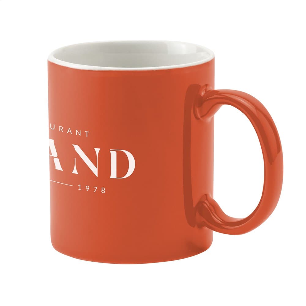 Mok van hoogwaardig keramiek. In geheel wit óf met gekleurde buitenzijde. Vaatwasserbestendig. De opdruk is vaatwasmachine getest en gecertificeerd: EN 12875-2. Inhoud 350 ml. Ideaal voor mokken bedrukken.
