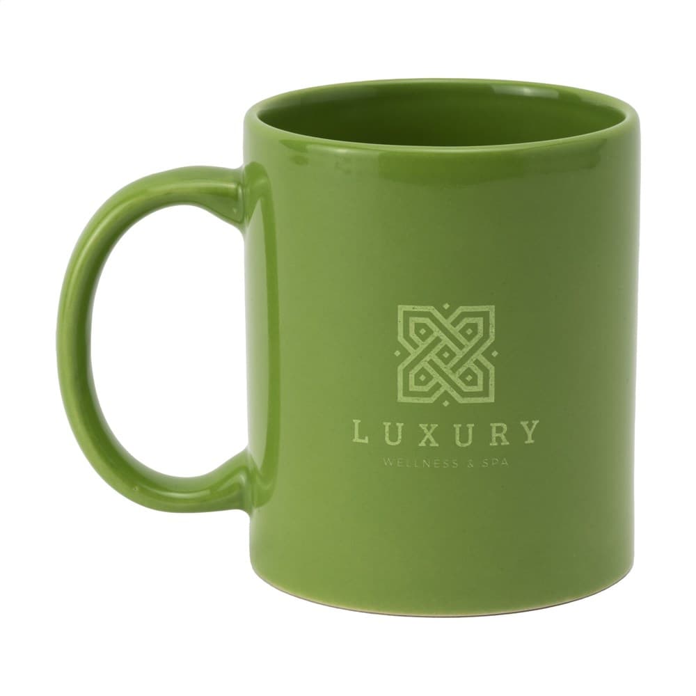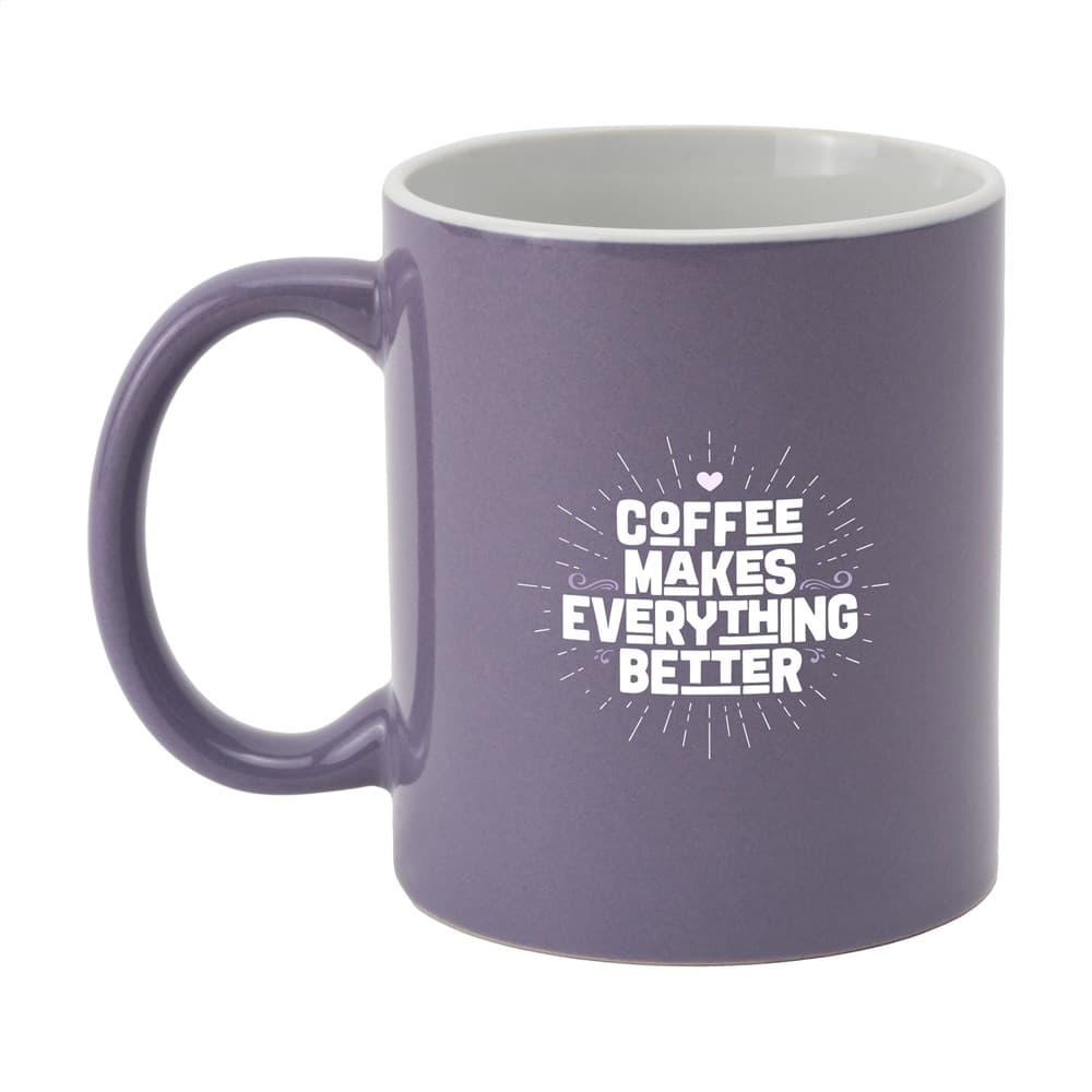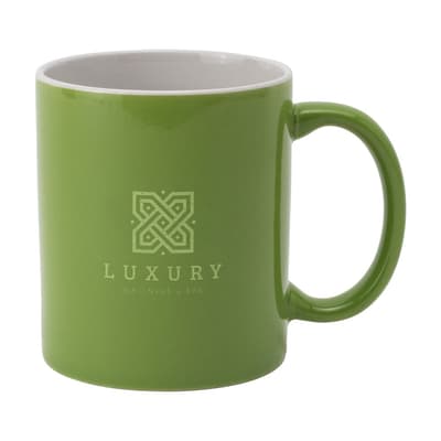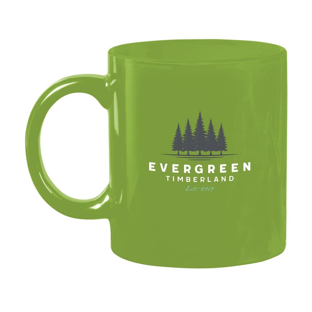 Mok van hoogwaardig keramiek. In geheel wit óf met gekleurde buitenzijde. Vaatwasserbestendig. De opdruk is vaatwasmachine getest en gecertificeerd: EN 12875-2. Inhoud 350 ml. Ideaal voor mokken bedrukken.