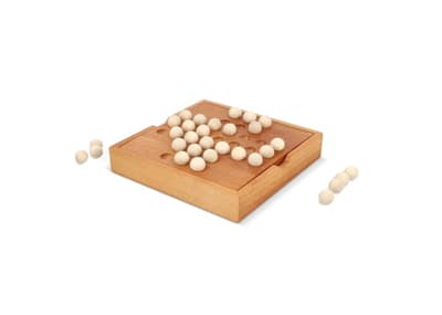 Deze houten solitaire-set met knikkers biedt een boeiende uitdaging voor spelers van alle niveaus. Speel alleen of wissel beurten af met anderen en bedenk strategisch hoe je zoveel mogelijk knikkers kunt verwijderen door er één over een andere te laten springen. De doos transformeert slim van opslagruimte naar speelbord.