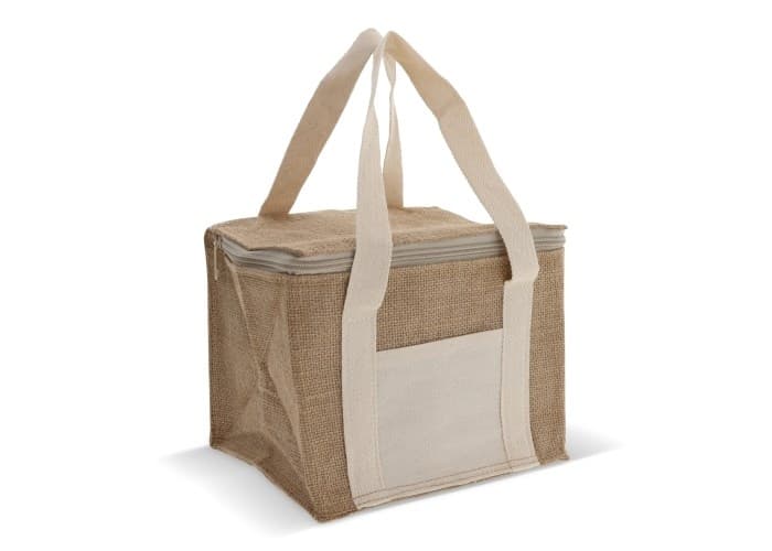 Stijlvolle koeltas gemaakt uit een mix van jute en katoen.