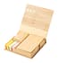 Met bamboe omhuld schrijfblok van gerecycled papier met 115 grote, 115 medium en 420 mini zelfklevende notities (in 3 verschillende kleuren).